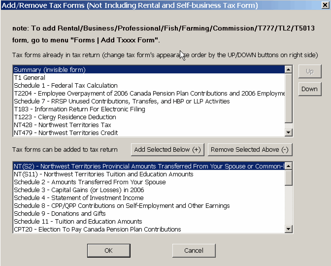 | Add/Remove other tax forms" or click icon "+/-Forms" in toolbar. A tax form management dialog will be launched.