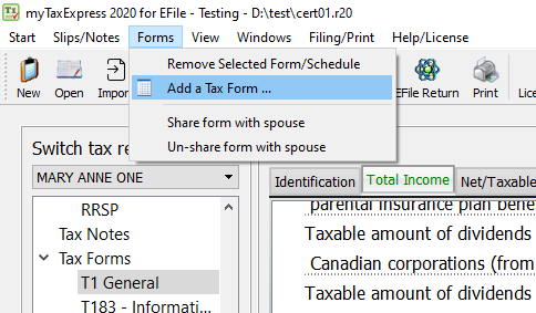 T1, Schedule 1, your provincial tax/credit form. Also, some forms