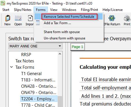 Note: certain tax forms are mandatory, NOT removable. For example,