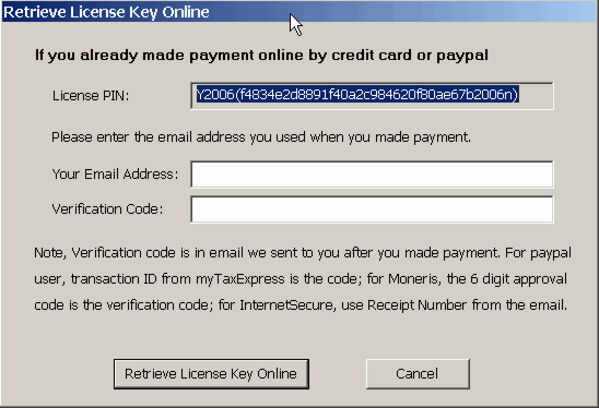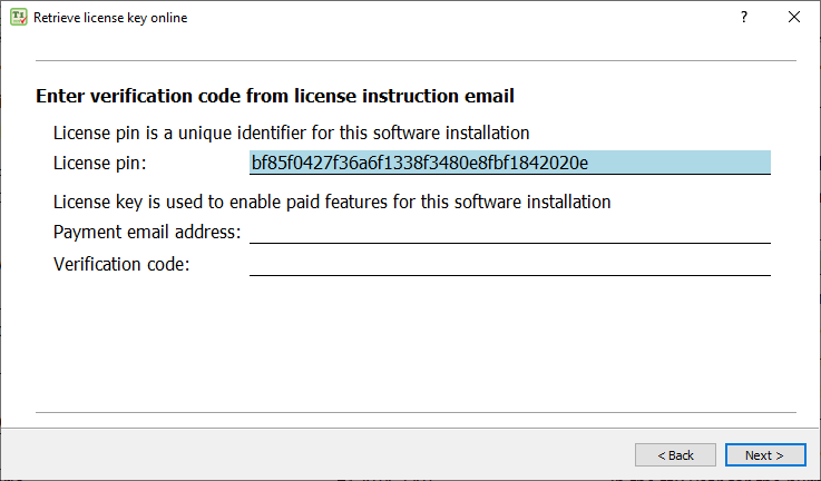 - Click button "Setup License" or choose menu "Help | Retrieve License Key Online...", license window