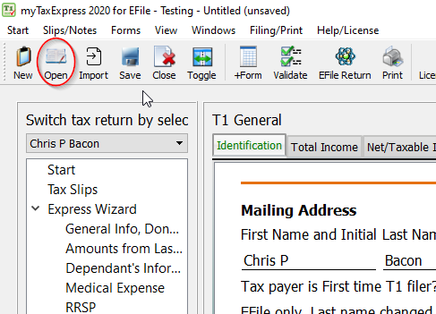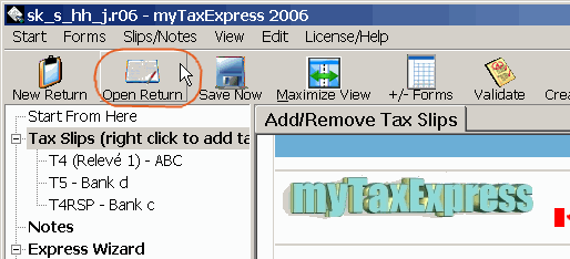 the file name you last saved as your tax return file. Click button "Open Return"
