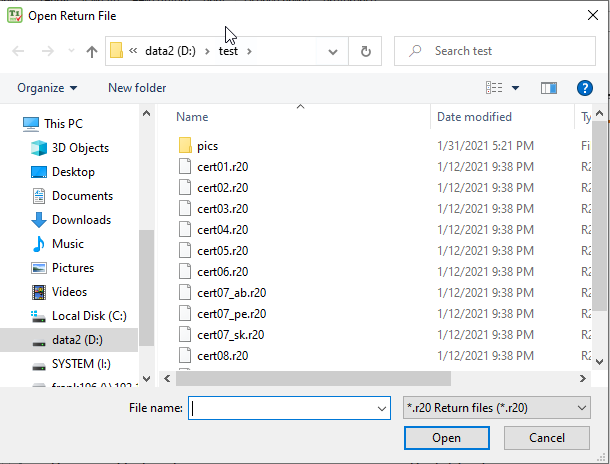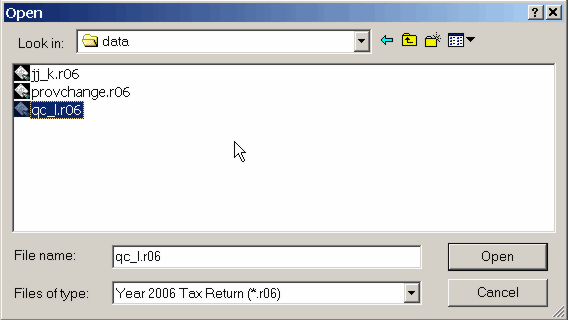 Select the tax return file you want, click 'Open' button to open